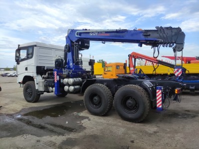 Особенности комплектации автомобиля | модель двигателя: WP12.430E50, КПП: 12JSDX220TA-B+КОМQH50, раздаточная коробка ZQC2000, односкатная ошиновка, шины 14.00R20, рулевое управление (пр-во КНР), 430 сцепление, воздушный фильтр в масляной ванне, передняя ось 9.0T MAN, задний мост 16T MAN,кондиционер, металлический бампер, задняя защита, задний мост с балансирной подвеской, алюминиевый топливный бак: 500л., аккумулятор предназначенный для работы при низкой температуре ёмкостью 180Ah, ABS с 6 каналами пр-во WABCO, электростеклоподъемники, электроподогрев зеркал, 2кг огнетушитель 2кг, противооткатное устройство, бак для мочевины 40л |
