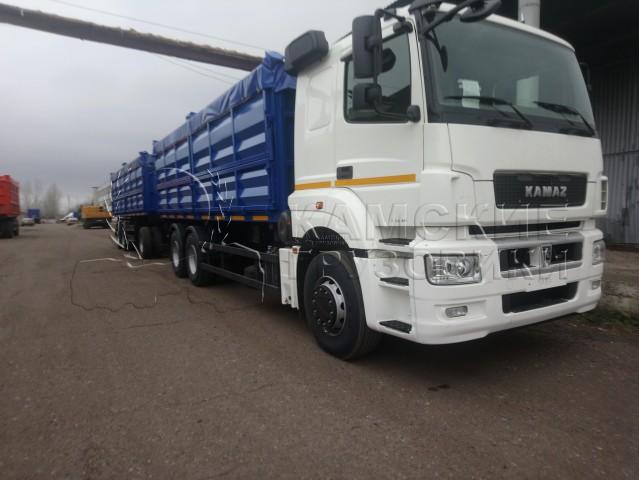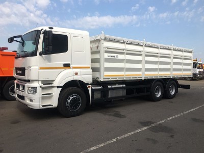 дв. Daimler OM457LA (Евро-5), система нейтрализ. ОГ(AdBlue), КПП ZF 16S2220, вед. мосты Dana на пн.подвеске, МКБ, МОБ, ECAS, EBS, ESP, ASR, кабина Daimler (низкая), кондиционер, отопитель каб. Eberspacher Airtronic D2 24V, тахограф российского стандарта с блоком СКЗИ, автопокрывало, скручиваемое на левую сторону, левая/правая сторона - три верхних глухих борта и три нижних, открывающихся снизу вверх, задний модуль - из трех бортов со стационарной площадкой обслуживания; лестница внутри кузова, УВЭОС.