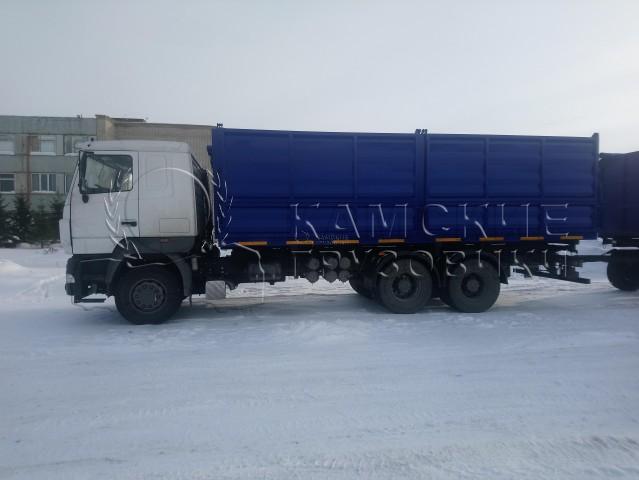 Самосвальная платформа разгрузка на две боковые стороны 50град, ручное запирание бортов, верхний ряд бортов с верхней навеской, нижний ряд бортов с нижней навеской,. или верхний борт глухой , нижние борта с верхней навеской Гидросистема: три опоры, с двумя гидроцилиндрами. Цвет платформы на выбор.